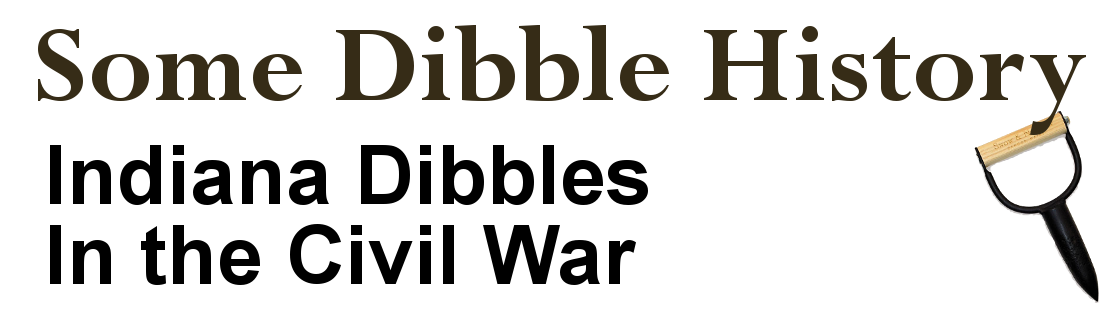 John Dibble of CT's son John W. Dibble also played a role in the Civil War. He was a private in the 2nd. Battery, Indiana Light Artillery. This unit participated in several minor battles in the "far" west, including engagements in Missouri, Arkansas, and Indian Territory (later the state of Oklahoma). The unit was organized for a three-year enlistment which ended in September 1864; most of its members left the army then. A few veterans remained, and the unit was reorganized in October. We don't know if John left in September or stayed on with the renewed unit.